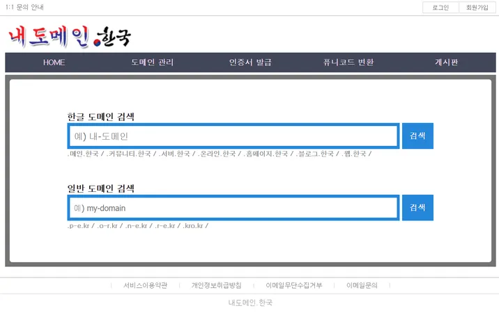 1. 무료 DDNS 제공 업체에 가입해야한다. 한국에는 정말 엄청난 무료 DDNS 서비스 제공업체가 있다. 내도메인한국이라고 하는 곳인데, 진짜 대박이다. 왼쪽 링크로 접속해보자.
